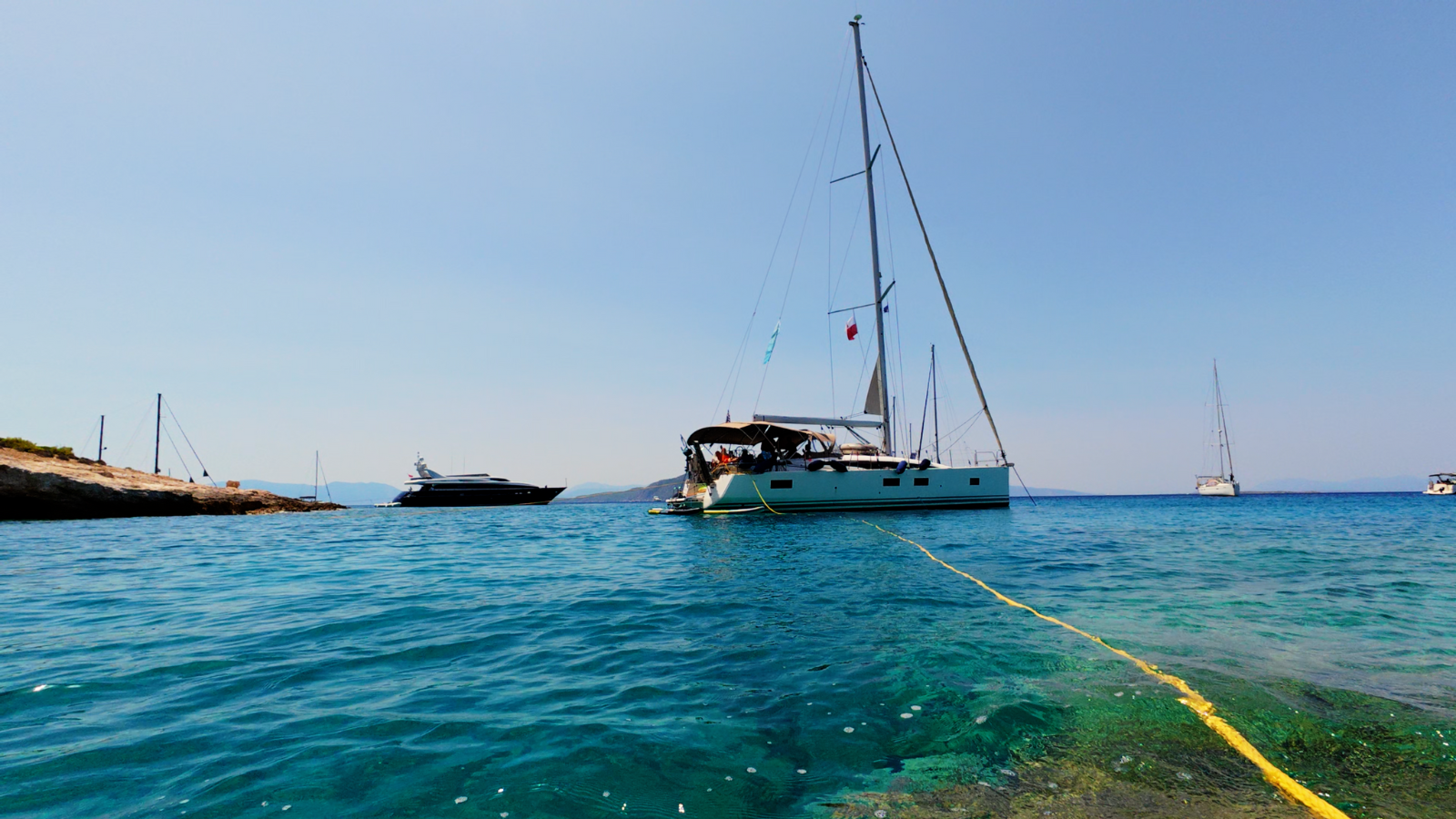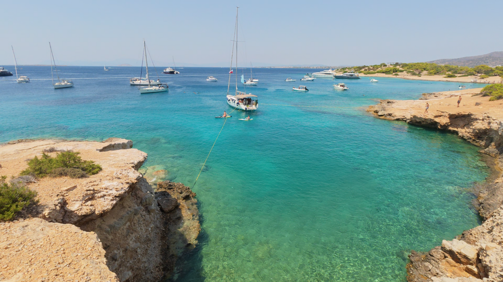 Moni is an uninhabited island near Aegina and one of the best anchoring spots in the Saronic Gulf. Clear waters, excellent visibility, and a feeling of isolation make it perfect for snorkeling and swimming directly from the yacht.
